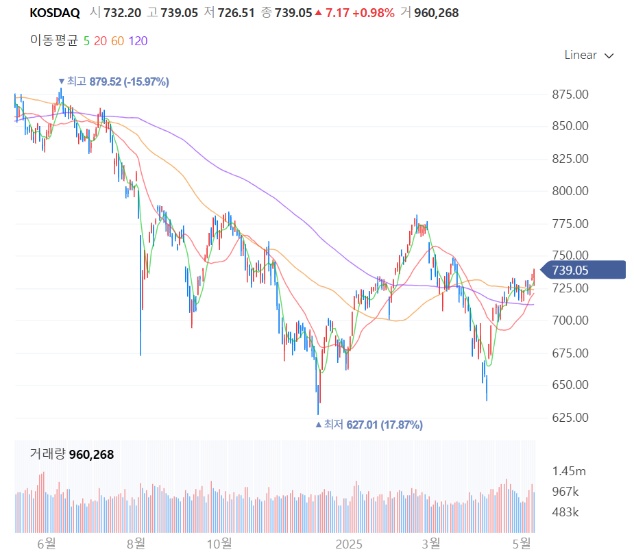 코스닥 역시 7.17포인트(0.98%) 오른 739.05로 마감하며 동반 상승했습니다.