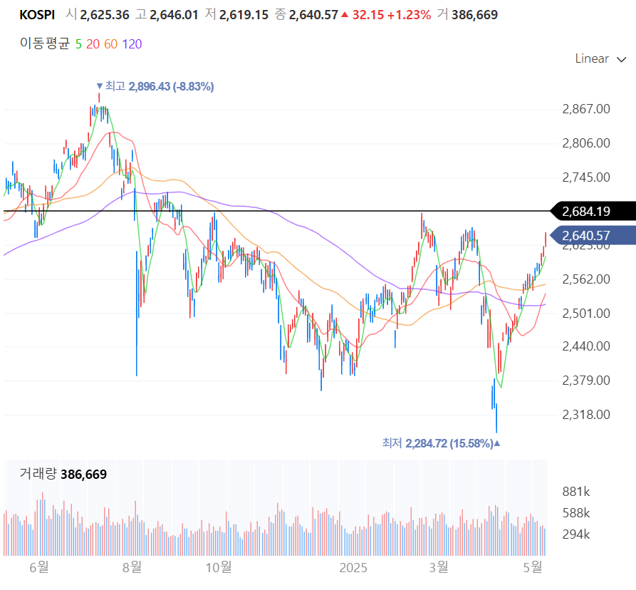 장 초반부터 강한 상승세로 출발한 코스피는 장중 오름폭을 점차 확대하며 2,640선을 돌파했어요.