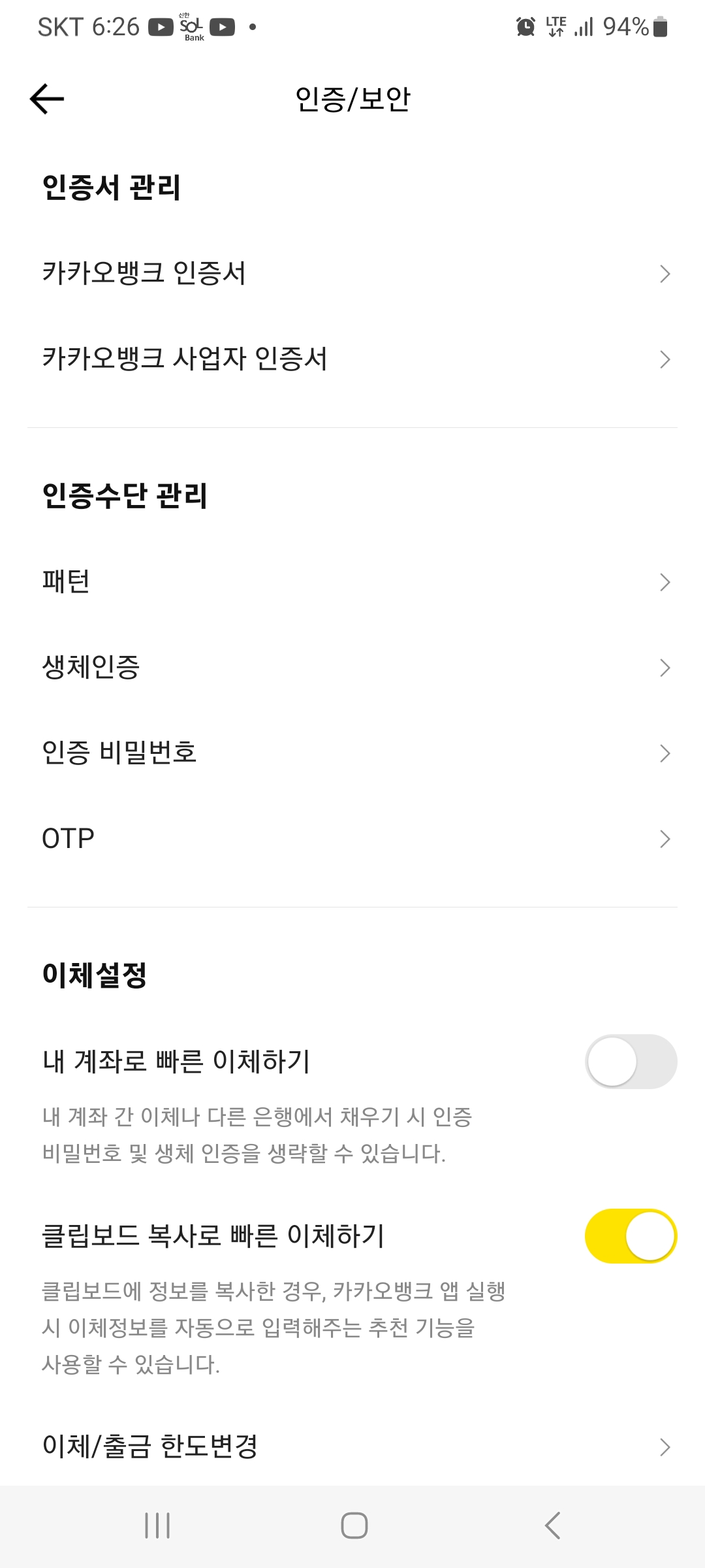 일부 은행 앱(예: 국민은행) 가능